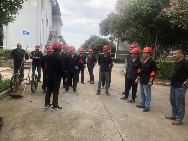 为了提高全体员工的消防应急能力,2022年6月29日下午3点,湖南明珠公司组织了一场五硫化二磷起火应急演练。