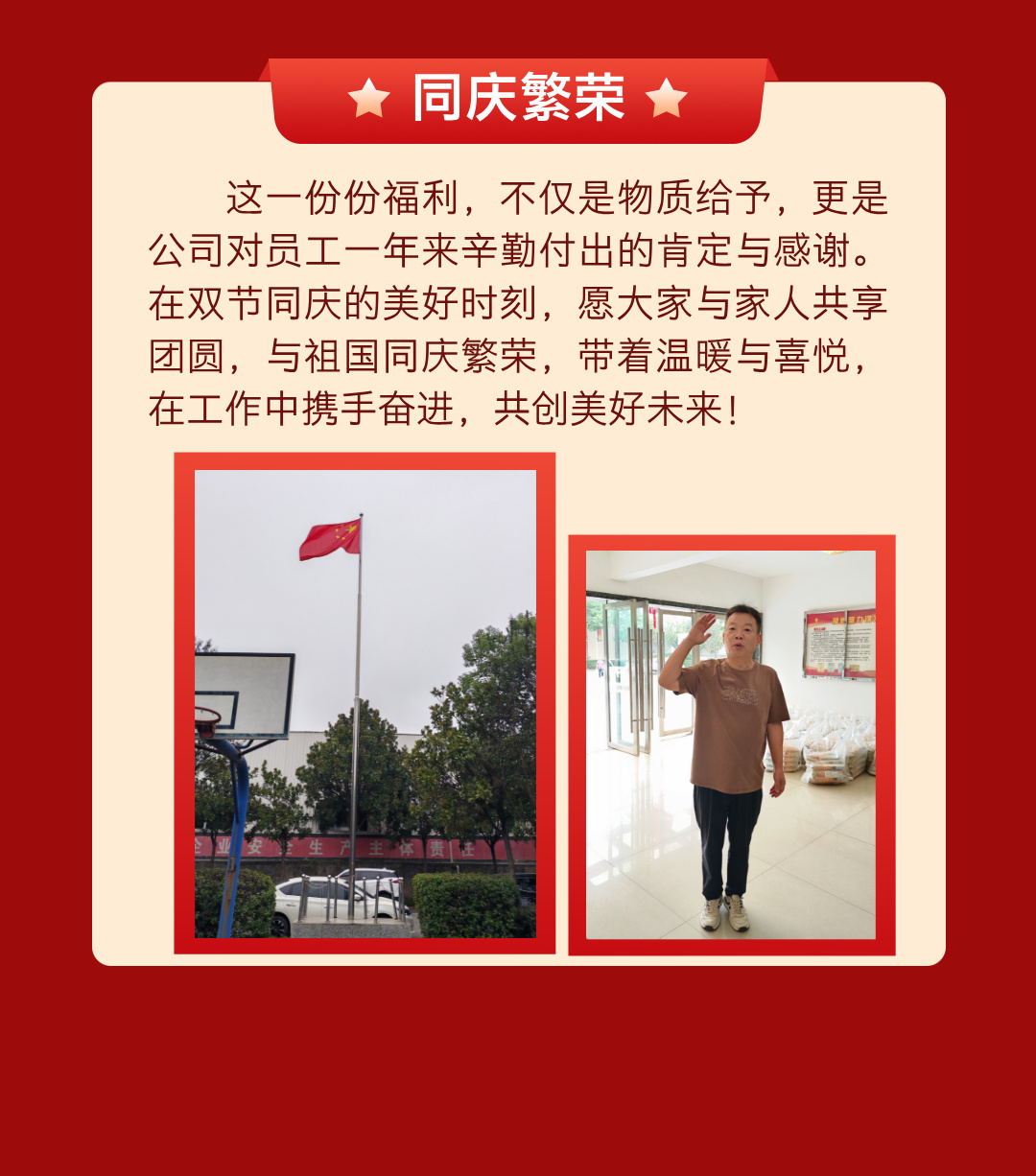 当中秋的圆月邂逅国庆的红旗,双节同庆的喜悦在企业里弥漫开来,为让员工在这特殊节日感受满满关怀和祝福,