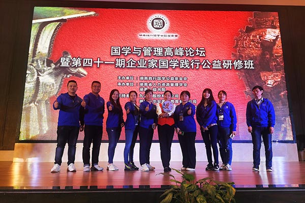 三月的长沙春光明媚、百花争妍、处处生机盎然。3月26日晚,国学与管理高峰论坛暨41期企业家国学践行公益研修班在长沙普瑞大酒店拉开帷幕,近300位学员都是来自企业的高管和企事业单位、行政机关的中高层管理人员。湖南明珠公司董事长刁华丽女士率企业管理人员参加了本期的学习。这已经是湖南明珠公司第二次派人参加国学践行公益研修班学习。